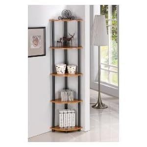The Furinno 5 Tier Corner Rack Bookcase Shelves Shelf Display Stand Rack for Multmiedia CD DVD, Display, Book - No Tool Assembly - Description